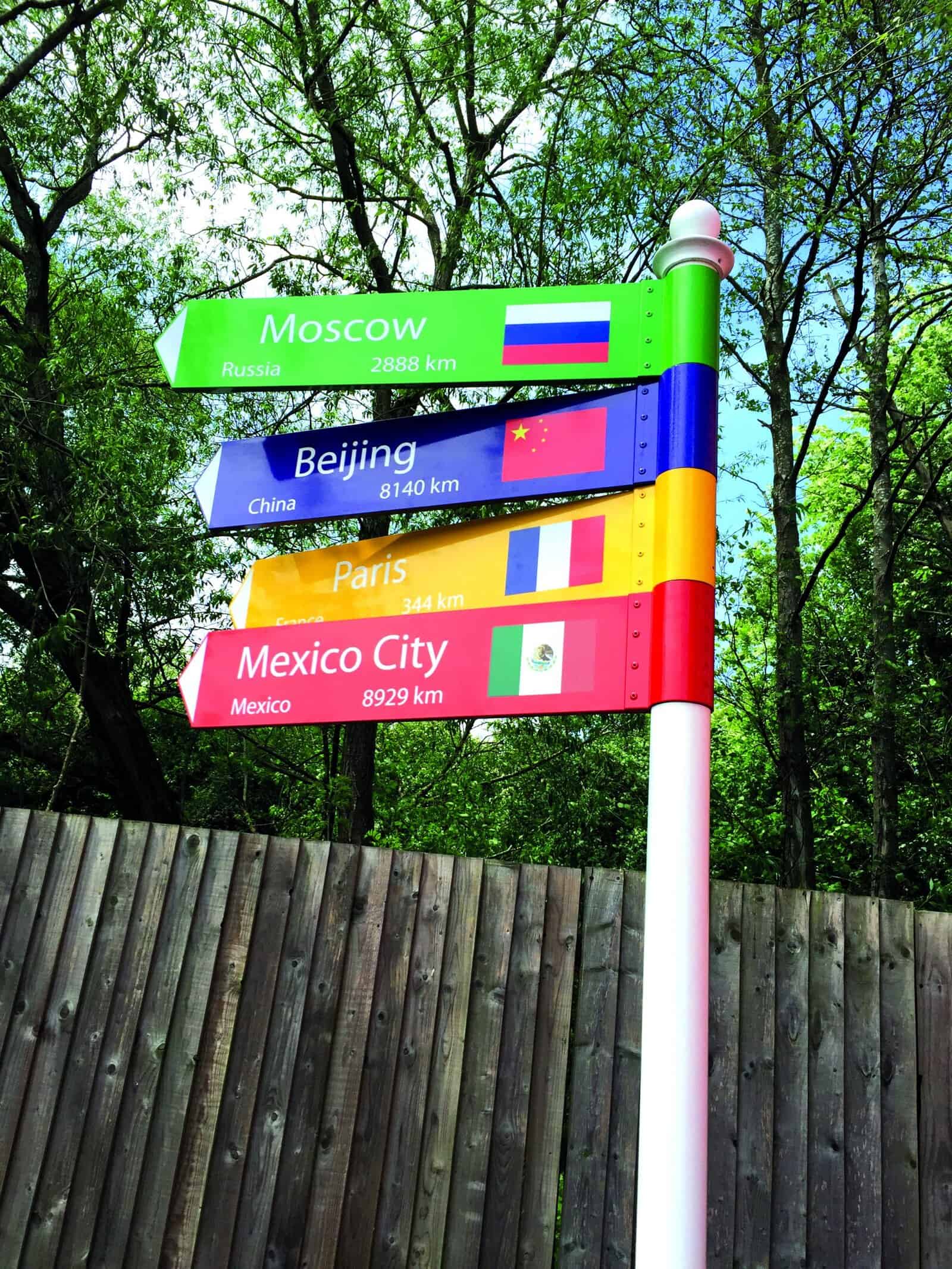 Many schools are now using Finger Posts to promote their values in playgrounds, at the front of school or even using them as a learning tool to show flag and distance detail for countries around the world.