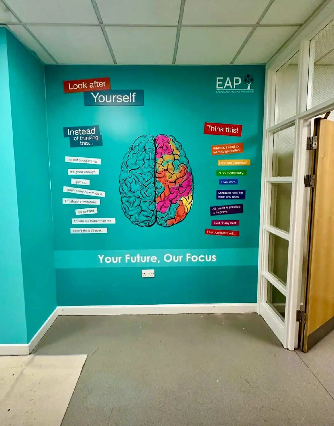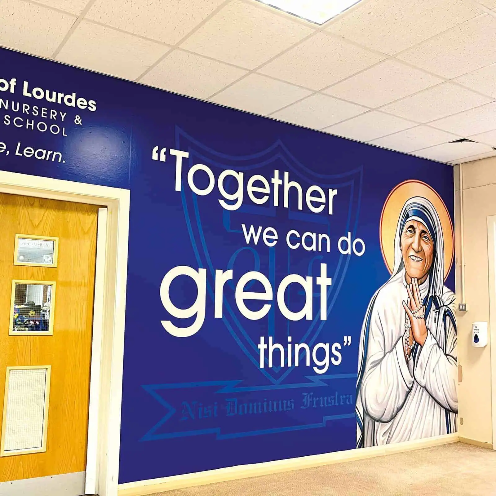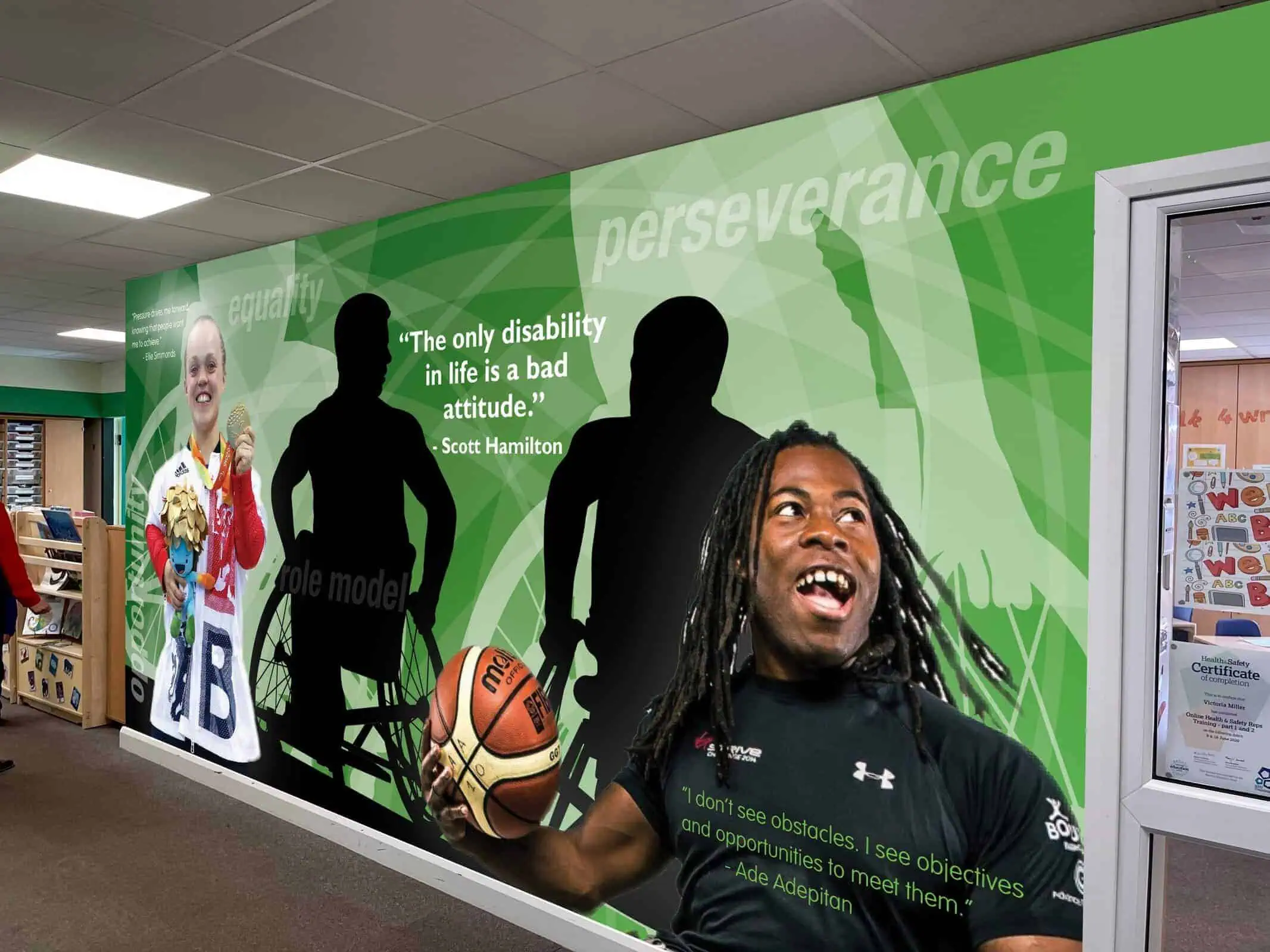 We can create a full colour design to meet your exact requirements. Whether it’s to celebrate your School Vision or Values in your foyer, transform a dull corridor or stairwell with a time-line or with images and quotes from inspirational people. Our costs include artwork creation at no extra cost!